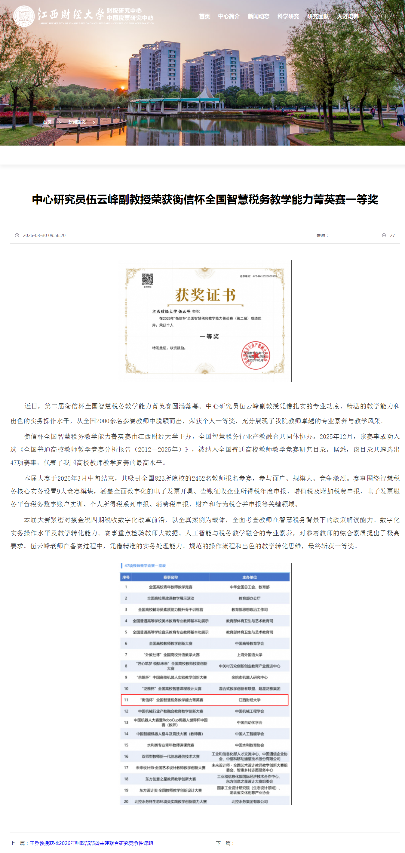 转载|中心研究员伍云峰副教授荣获衡信杯全国智慧税务教学能力菁英赛一等奖